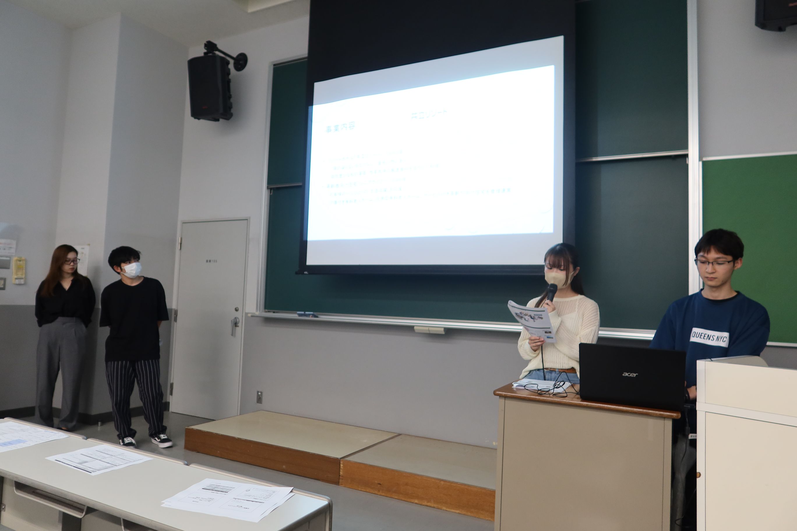 また、7月3日には、報告会として各グループで取材した内容をもとに企業の良い所を紹介するプレゼン発表を行いました。学生達は様々なグループの発表を聞き、インタビュー先企業以外の業務内容や働き方を知る機会となりました。