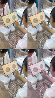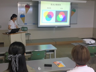 体験授業は「色覚検査」について。色と光について学び、アプリを利用して様々な色の感じ方を体験しました。先輩とのフリートークで学校生活の???を解消!!