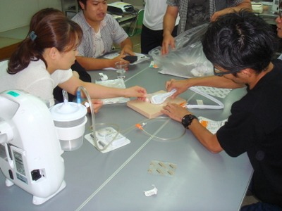 参加者は、実際に機器を操作し、デブリードマン、陰圧閉鎖療法の実際を、手を動かし、相互評価しながら熱心に学びました。既に日常的に実施している診療看護師も多く、手順の確認、臨床現場での応用拡大の可能性についても活発な意見交換がなされました。
