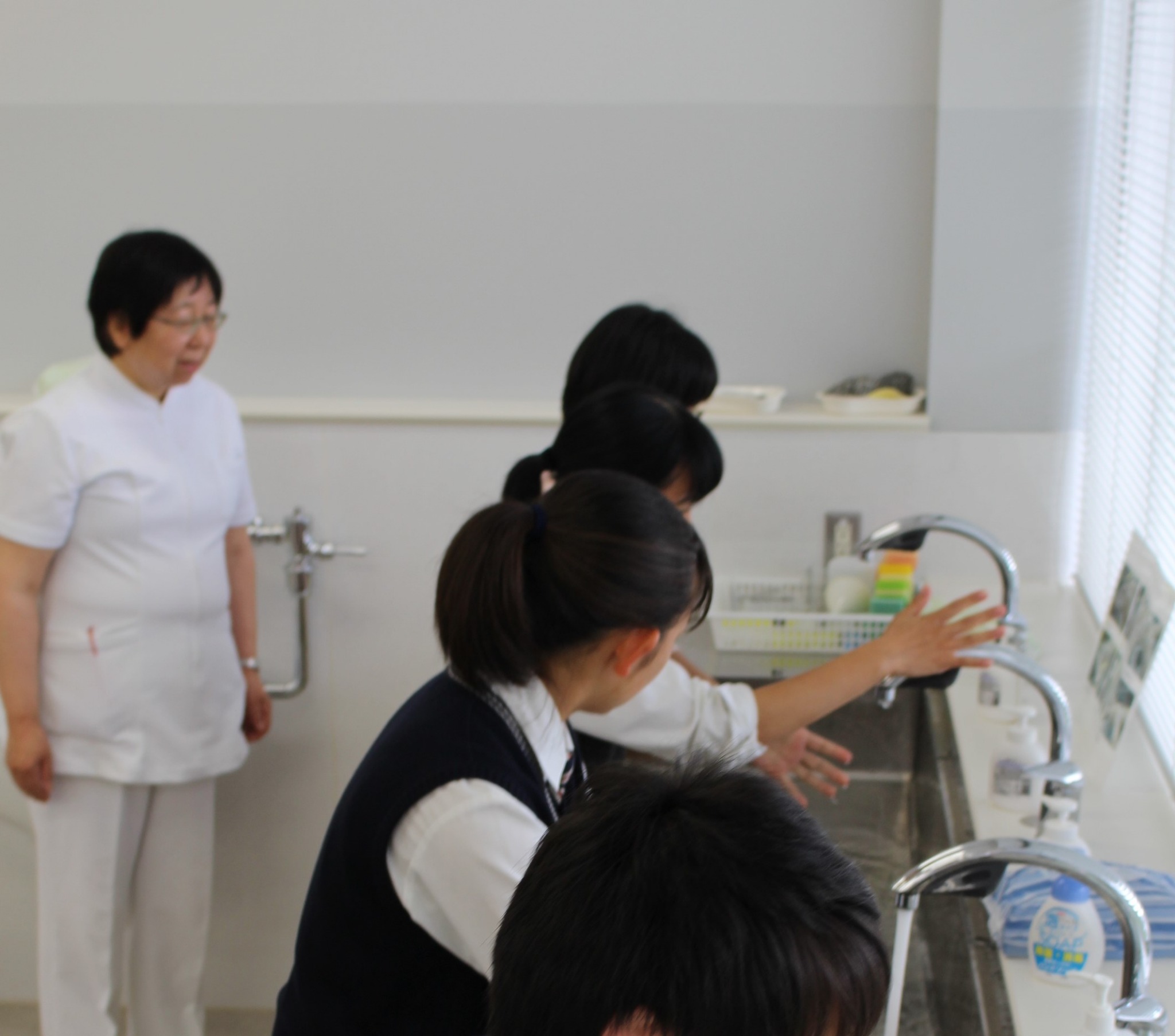 今回は看護職として病院で行う手洗いを体験する企画を行いました。