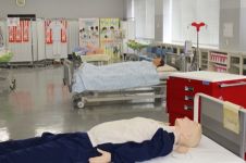 実習室内にて、演習で使用する看護機材の展示やデモンストレーションを見学していただきました。