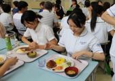 看護学科の紹介が終わったあとは、学生が参加者の方々を昼食会場までご案内し、一緒に昼食をとります。