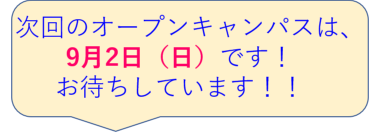 次回のオープンキャンパスも皆さんの参加をお待ちしております。