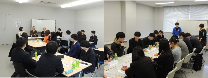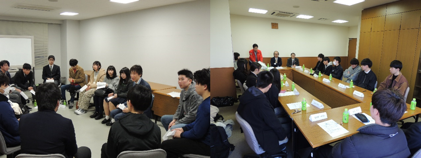 教員も交えた入学予定者と在校生とのフリートークでは、4つのグループに分かれて、大学生活における質疑?応答が行われました。在校生や教員を身近に感じることができたのではないかと思います。