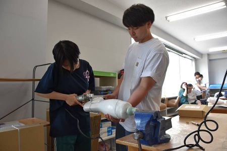 3年次前期開講科目である義肢装具学実習では、義肢装具士の先生のご指導を仰ぎながら、プラスチック製の下肢装具を作成する実習を行っています。