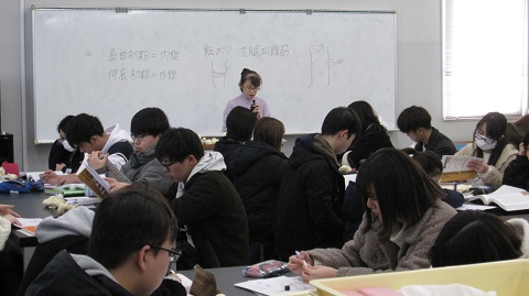 1年生後期に開講されている「身体運動学演習」の授業を紹介します。