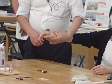 今回はアプローチの3の道具について、説明をしました。失った機能を補うように工夫した道具を自助具といいます。今回は自助具の使い方を紹介し、実際に体験をしていただきました。