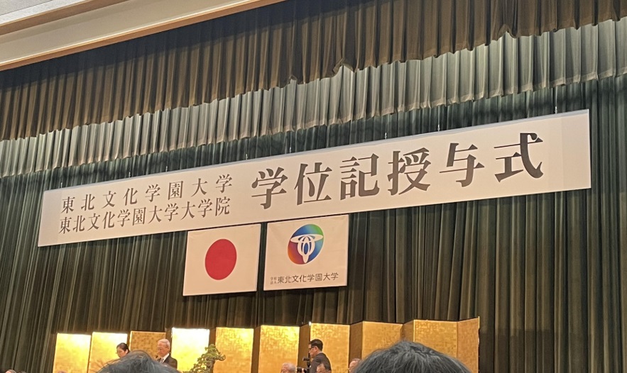 式典後は言語聴覚学専攻に分かれて学位記授与式が行われました。藤原専攻長より卒業生に向けた挨拶が行われ、ひとりずつに学位記が授与されました。その後は学長賞、日本言語聴覚士協会会長賞、全国リハビリテーション学校協会優秀賞、輝ける者賞の表彰が行われました。