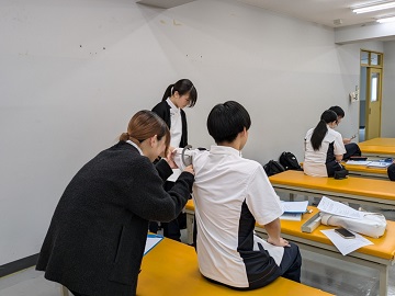 単純に動作や手順を真似るのではなく、これまで学んだ知識をつなぎ合わせて、1つ1つの手順の意味を考えながら実習しました。お互いの実技に対し、感想を述べあい、切磋琢磨して知識?技術?態度を高めていきました。