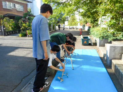 東日本大震災以降、本学科では、災害時緊急給水システムの点検を兼ねて、毎年6月頃に設置訓練活動を行っています。