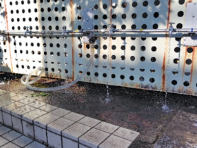 本学の災害時緊急給水システムは、2号館横の地上設置受水槽に設置されています。