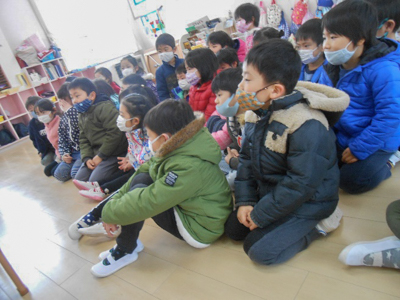 園長先生の話を聞いて、年の初めの決意を新たにし、楽しく園生活を過ごす準備は万端です。