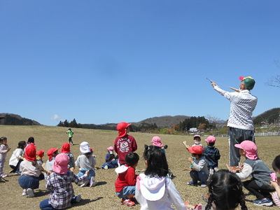 次は、小高い丘を思いっきり走り回っておにごっこをしました。