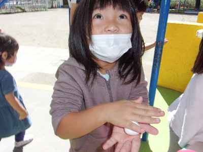 虫かごを持った年中さんのお友達も、虫かごをテラスに置いて、おだんご作りに加わりました。