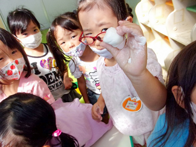 年長さんはもちろんの事、ねんどあそびの好きな年少さんも上手にまん丸く作れました。
