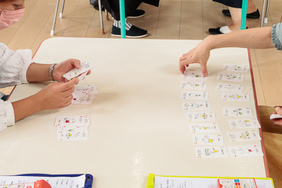 今回は、リピーターのお母様方が多く参加してくださり、「色彩心理診断」に始まり、「お手玉」を使って感覚統合あそび、「コミュニケーションカード」でのタイプ分けをし、盛りだくさんな内容でした。