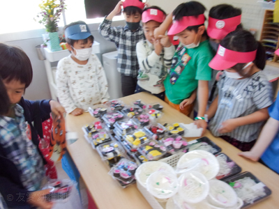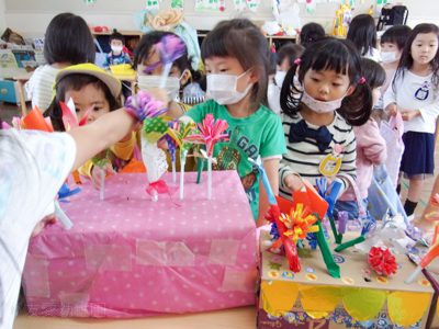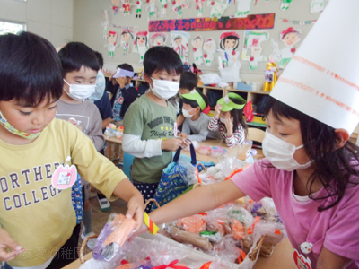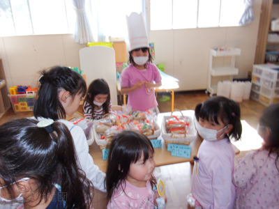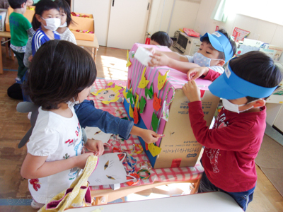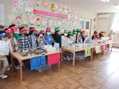桜組?桃組のみんなで、2週間もの準備期間を経て、たくさんの品物を陳列したお店屋さんがいよいよ開店しました。