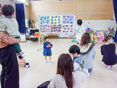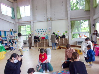 今年度初めての地域親子ふれあい教室「幼稚園で遊ぼう」を行いました。登園後のシール貼りや朝の会、大型絵本やふれあい遊びなど、幼稚園の流れを親子で楽しみながらスタート!
