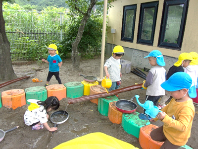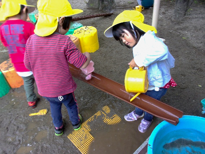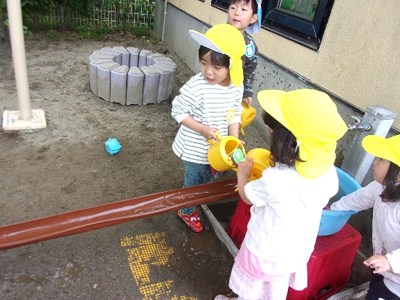 子どもたちなりに試行錯誤し、真剣な表情で水を流していました。