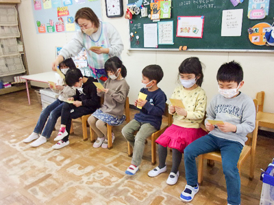 読み手は、年長さん。大きな声でハキハキと読んでくれました。