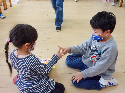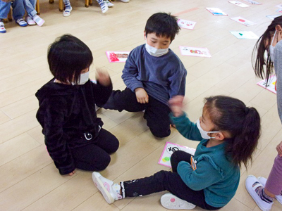 「いっぱいとれたよ!」「たのしかった~!」など、とても楽しんでいる様子が見られました。年少さんには、年中さん?年長さんが優しく手を握って教えている姿はとても微笑ましかったです?