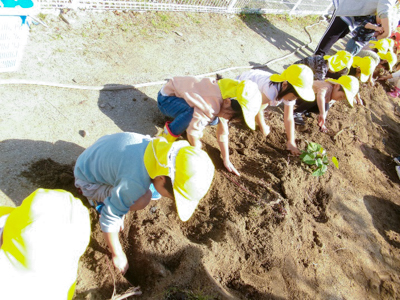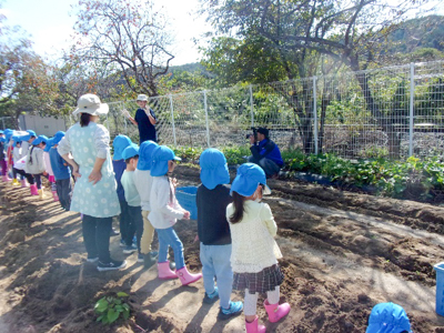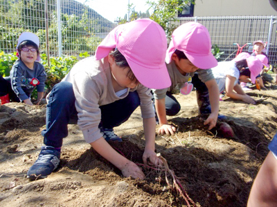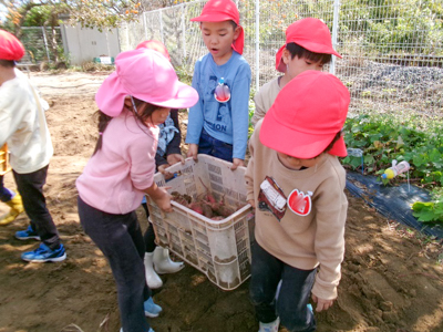 朝から長靴を持ち気合十分で登園してきた子どもたち!!クラスでお芋ほりの絵本を見て、「僕もたくさん掘るぞ!!」とやる気満々でした。