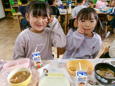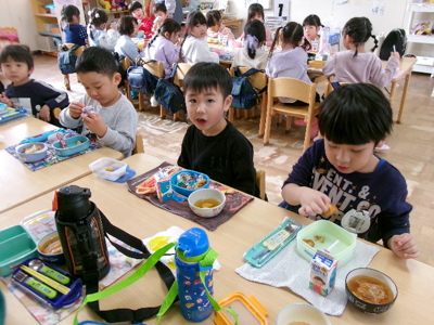 みんなが頑張ってついたお餅は、役員(お手伝い係)のお母さん達がきなこもち、しょうゆ餅、お雑煮にしてくれました。どの味もとてもおいしかったね。沢山のおかわりの声が聞こえた1日でした。